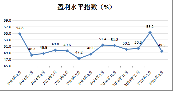 盈利水平指数为49.5%,较上月大幅下降5.7个百分点。分析认为,商品经营类企业对2月份盈利水平的预期符合行业季节性规律。
