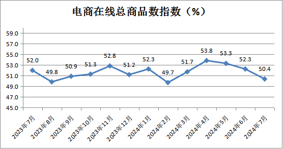 电商在线总商品数指数为50.4%,较上月下降1.9个百分点,表明电商经营类企业备货意愿放缓。