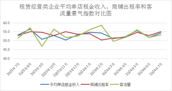 (二)数据显示,7月份租赁经营类企业平均单店租金收入、商铺出租率和客流量等3个正向指数同步上升。分析认为,高考结束,商场暑假短期服务项目增多和老百姓避暑纳凉、家庭聚餐需求重叠是租赁经营类企业正向指数上升的主要原因。