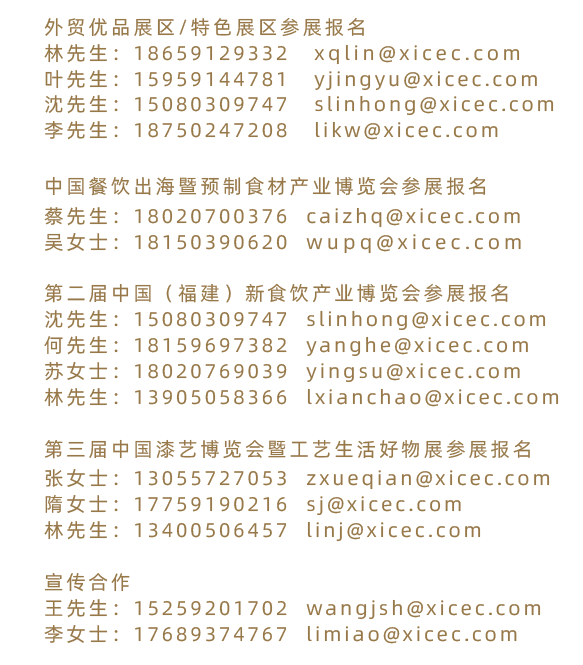 邀请全国漆艺及日用工艺品上中下游相关企业参展,同期将继续策划工艺美术行业垂直领域论坛并组织策划“福品杯”漆艺作品设计大赛。在凝聚文化、彰显价值,推崇物质、精神并进的美好生活的同时,聚焦消费市场,组织国内外专业观众及买家参观,打造高质量全产业对接平台。进一步推进漆艺及日用工艺品的产品创新、品牌推广、信息交流,扩大福建工艺美术大省的知名度和影响力,助力福文化产品走向世界,具象化人民对美好生活的向往。