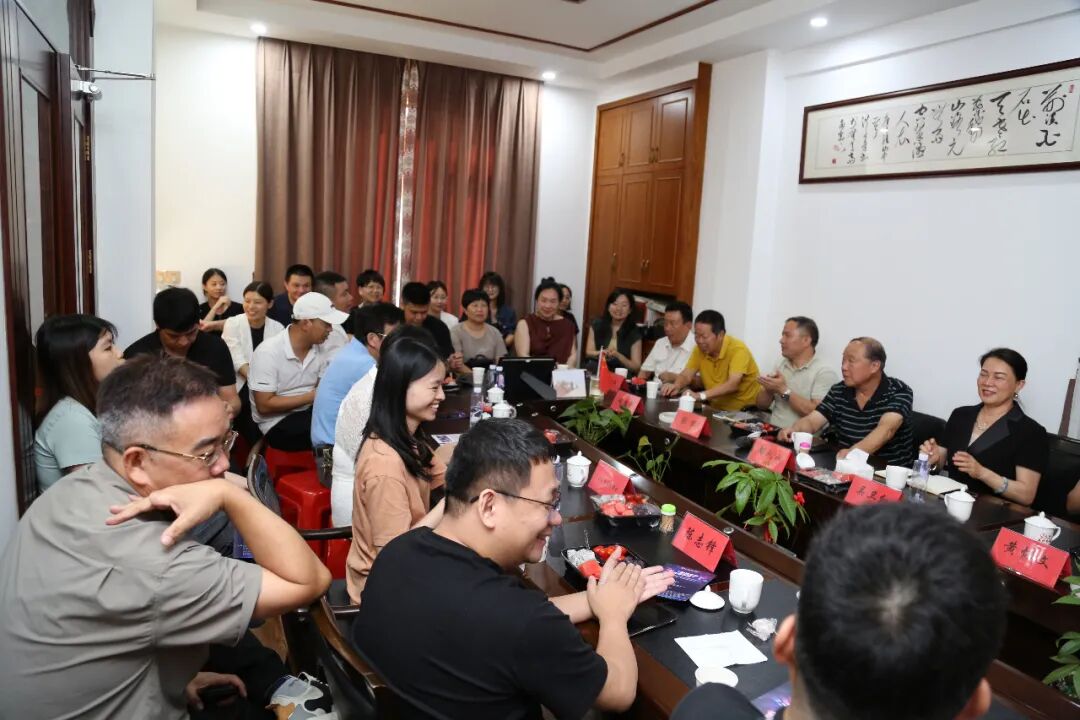 7月29日,中国商业联合会直播电商工作委员会、福建省商贸业联合会、福建省老字号企业座谈会在晋江举办,会议主题为“链接全球 共播未来”,中国商业联合会特邀副会长、直播电商工作委员会主任吴卫红、副主任石玺瑞、副主任季旭、副秘书长张标一行及“播博会”承办单位福建省商贸业联合会秘书长黄怀文、业务部主任赵建峰受福建省老字号协会会长郑礼水的邀请,与二十余家“老字号”企业负责人共同探讨如何利用“播博会”擦亮老字号的“金招牌”!并受到福建省老字号协会执行副会长、福建省泉州美琼食品有限公司董事长施德焕的热情接待。