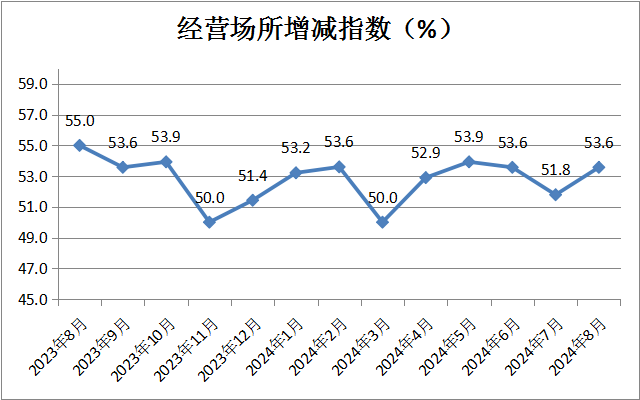经营场所增减指数为53.6%,较上月上升1.8个百分点,表明租赁经营类企业门店数量保持稳定增长。