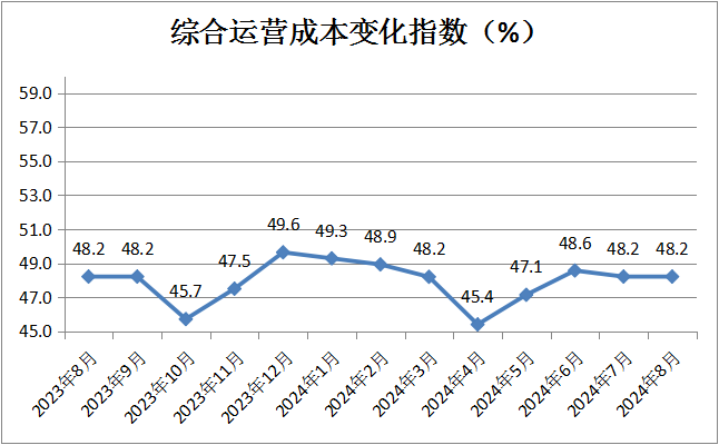综合运营成本反向指数为48.2%,与上月持平,表明租赁经营类企业综合运营成本保持稳定。