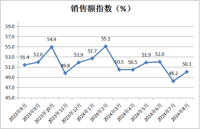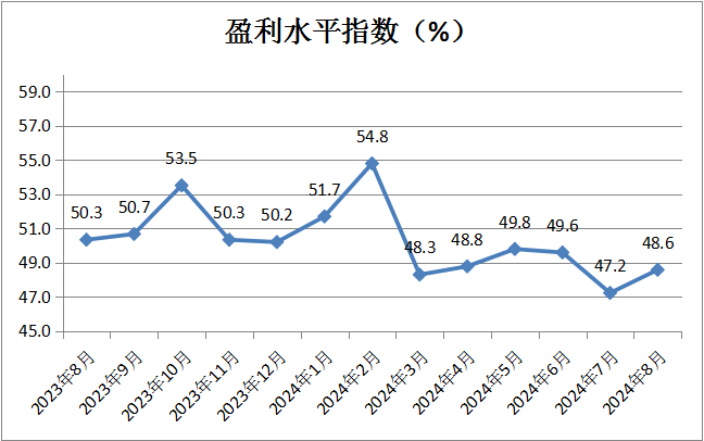 盈利水平指数为48.6%,较上月回升1.4个百分点,表明商品经营类企业对8月份盈利水平增长的预期有所提高。